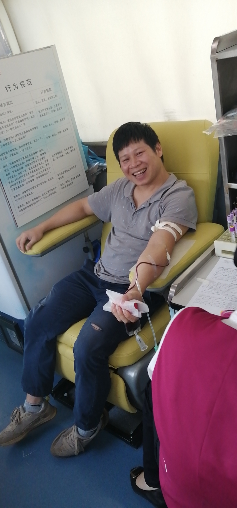 烈日炎炎,大家献血的热情依然高涨,来到松岗文化广场后,在工作人员的引导下,大家依次填表、体检、验血、抽血,他们中有的人是第一次献血,有的人则已经连续几年多次献血了献血者纷纷表示,无偿献血既是一项利国、利民、利己的善举,也是每个健康公民应尽的义务,通过无偿捐献自己的血液可以帮助那些急需救治的病人,为社会奉献一点爱心,同时还有益于身体健康。